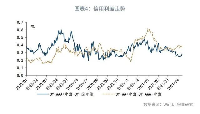 值得关注的是,3月信用债融资结构短期化明显,除超短融净融资规模达到2073亿元以外,其他期限更长的银行间信用债品种,净融资规模均为负值,而3月高评级和中低评级的信用利差走势分化,也表明当前投资者对于信用风险的规避态度。
