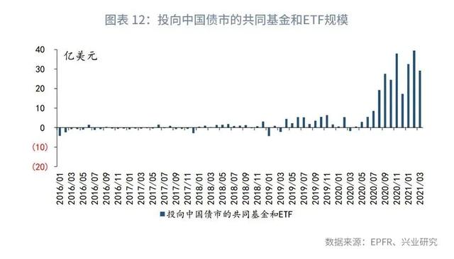 二是截至2020年12月末,前两大国际债券指数对中国债券的纳入已经完成,跟踪上述指数的被动型基金对中国债券的增配基本结束。