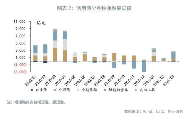 分券种来看,3月份利率债发行进度慢于往年,4月初地方债发行进度仍较慢,利率债供给高峰将进一步推迟;3月为信用债到期规模的全年高峰,银行间信用债融资短期化明显,以超短融为主,企业债、中票和短融等品种的净融资均为负值。